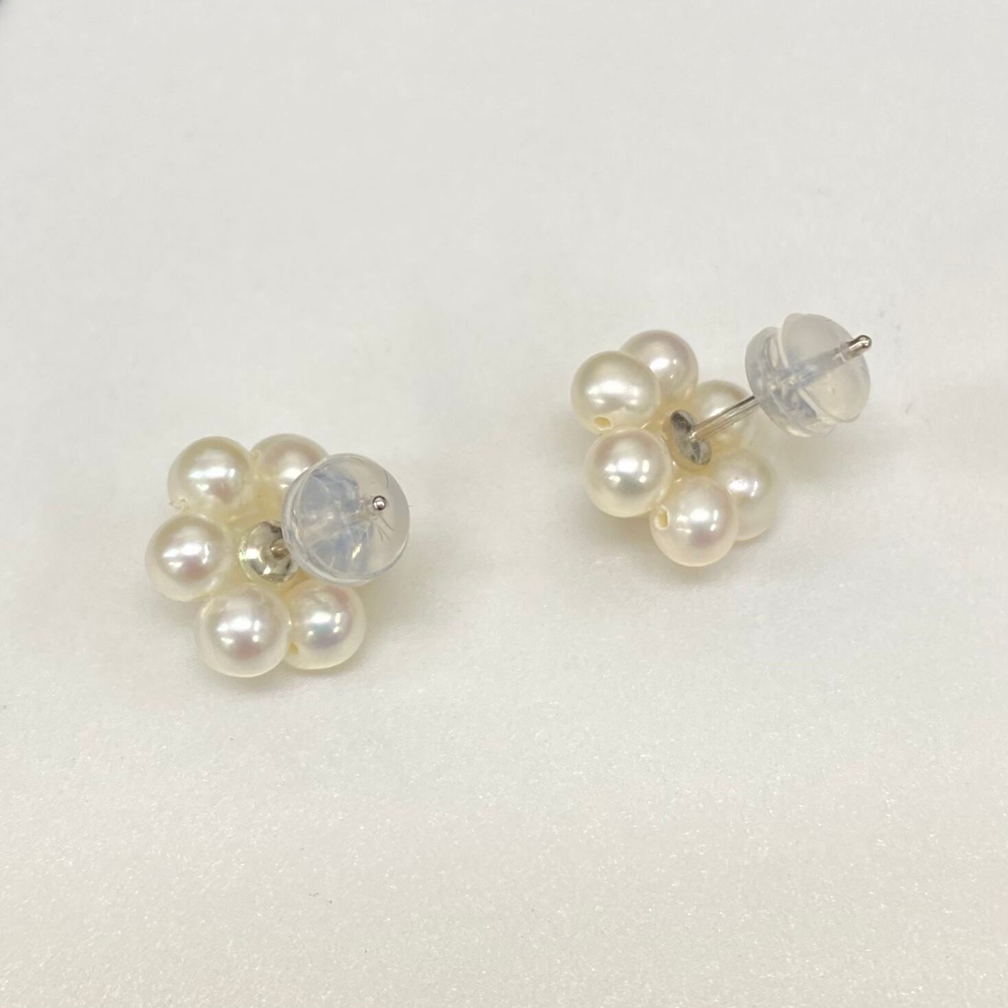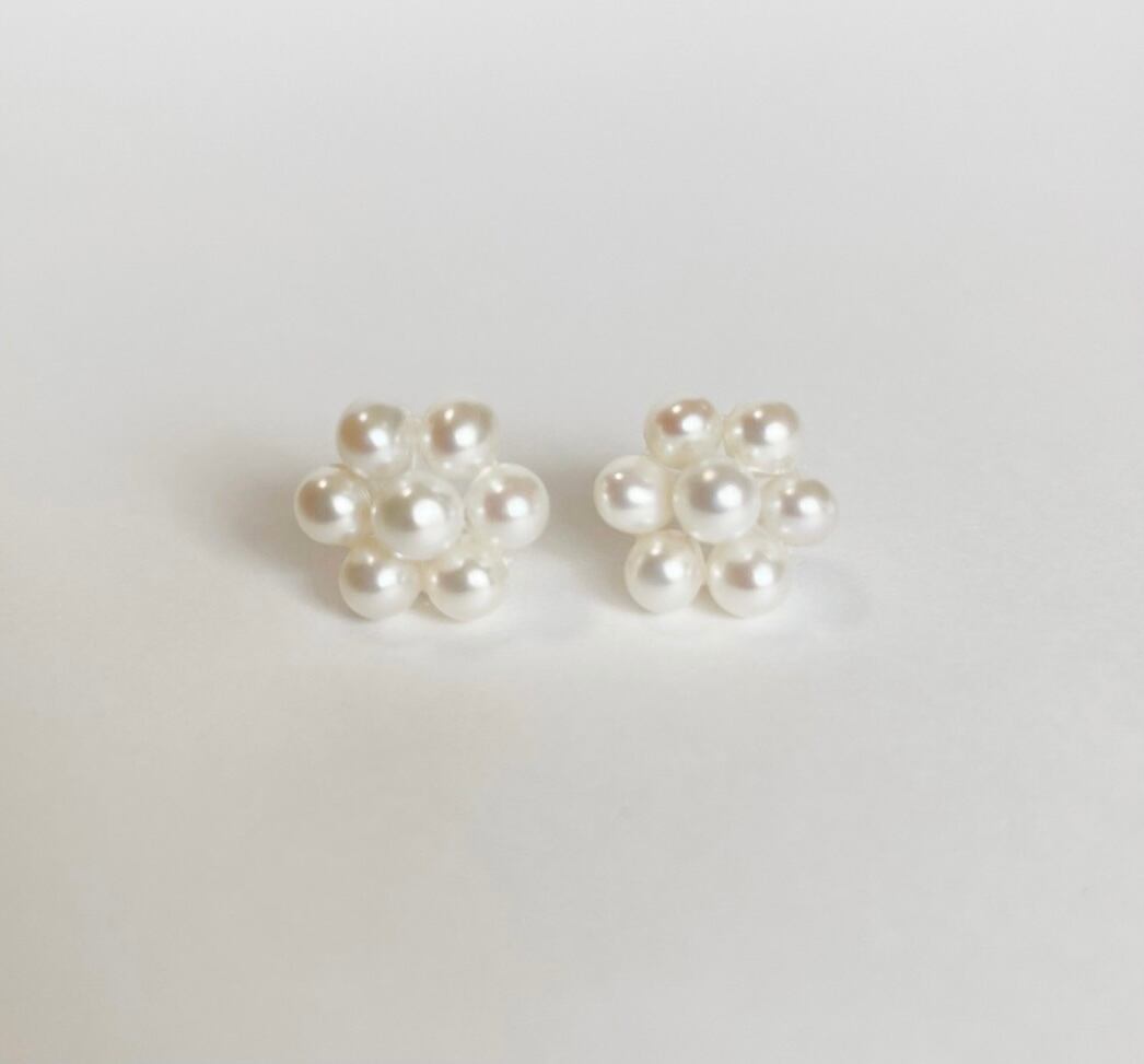 大きさや色が左右少しでも近くなる様にパールを選びお作りしておりますが、ひと粒ひと粒のサイズに差があるため完全な左右対称ではございません。ご了承ください。